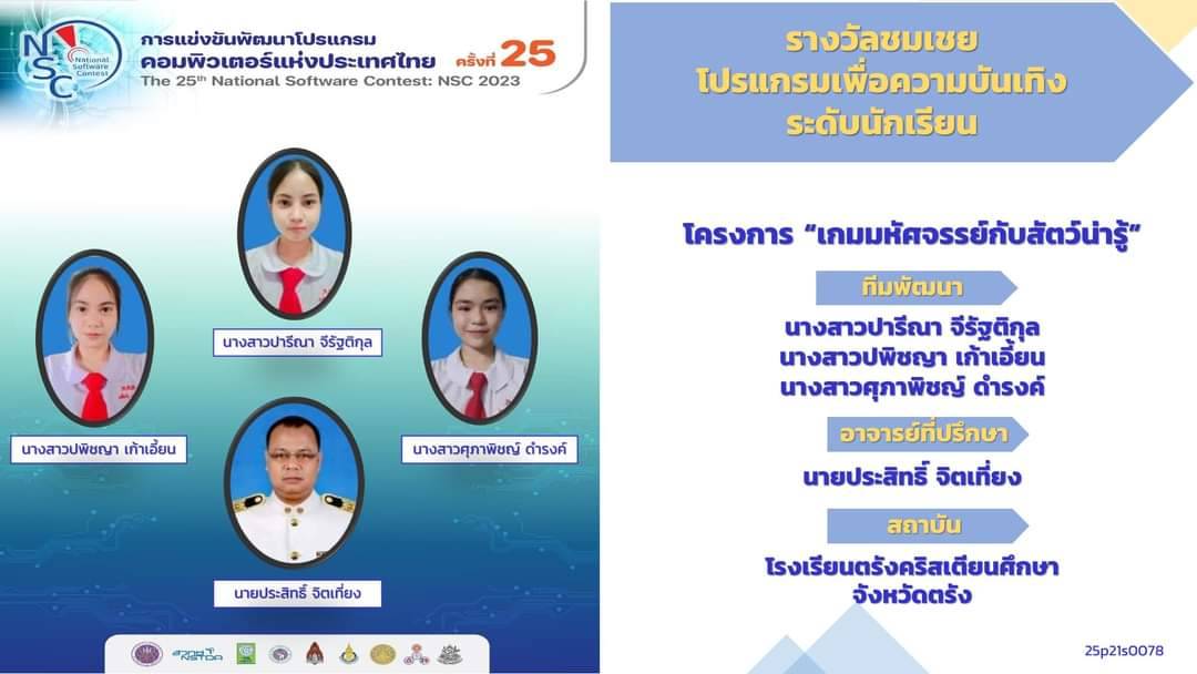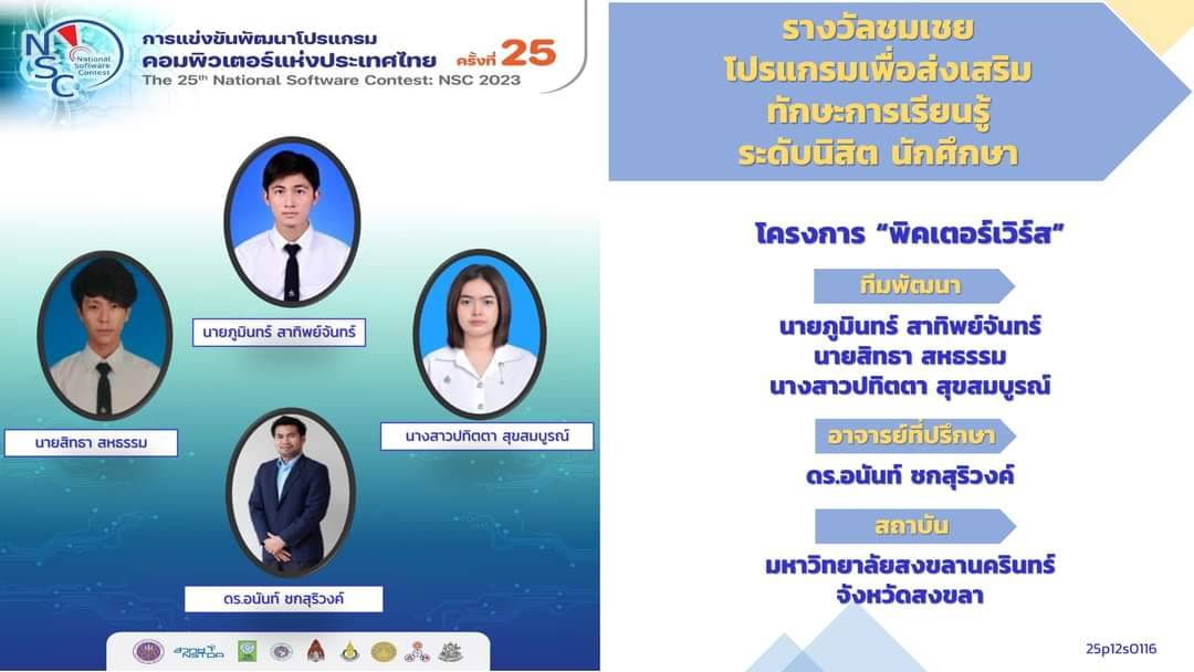 - รางวัลชมเชยน โปรแกรมเพื่อส่งเสริมทักษะการเรียนรู้ ระดับนิสิต นักศึกษา โครงการพิคเตอร์เวิร์ส