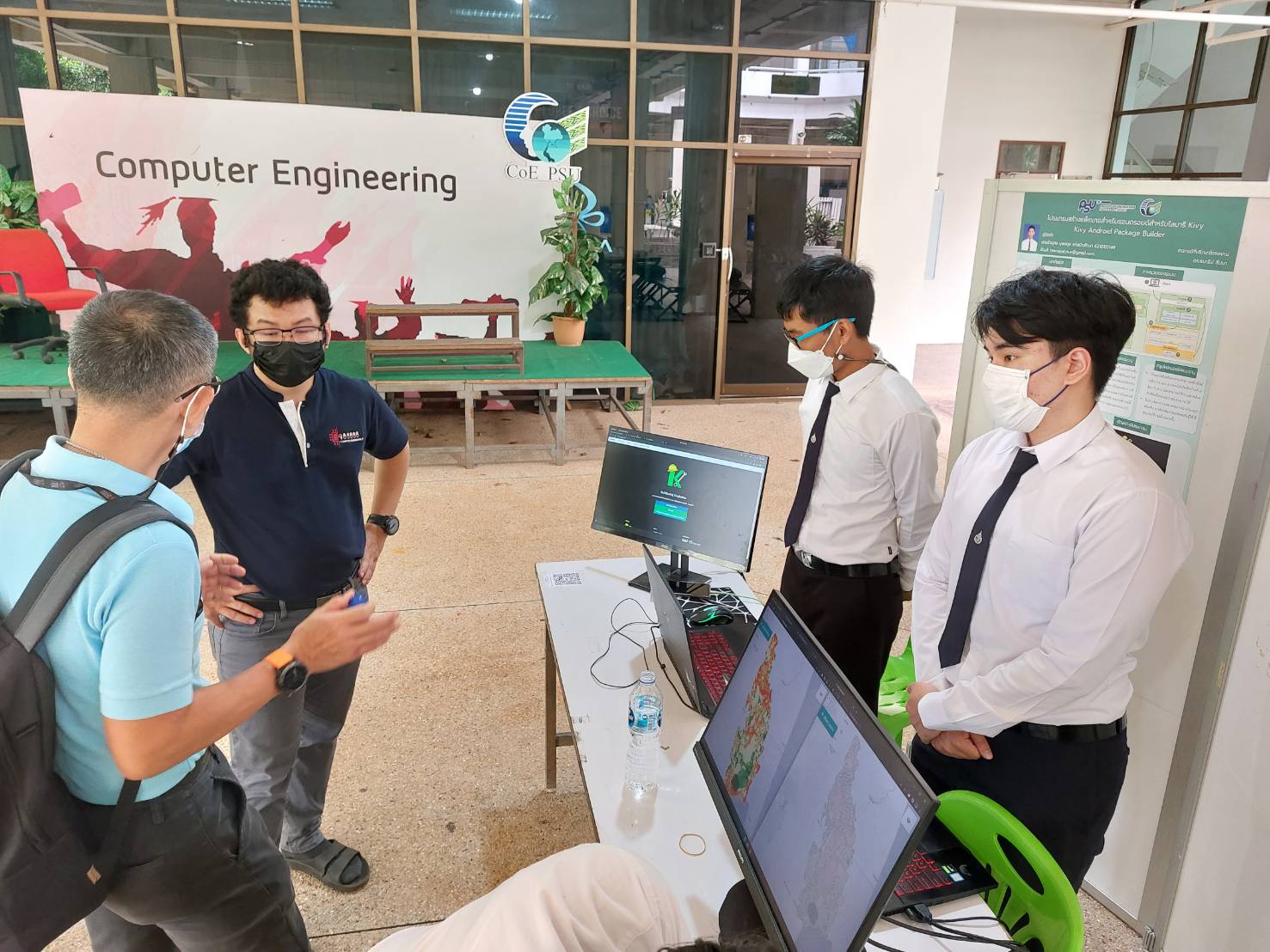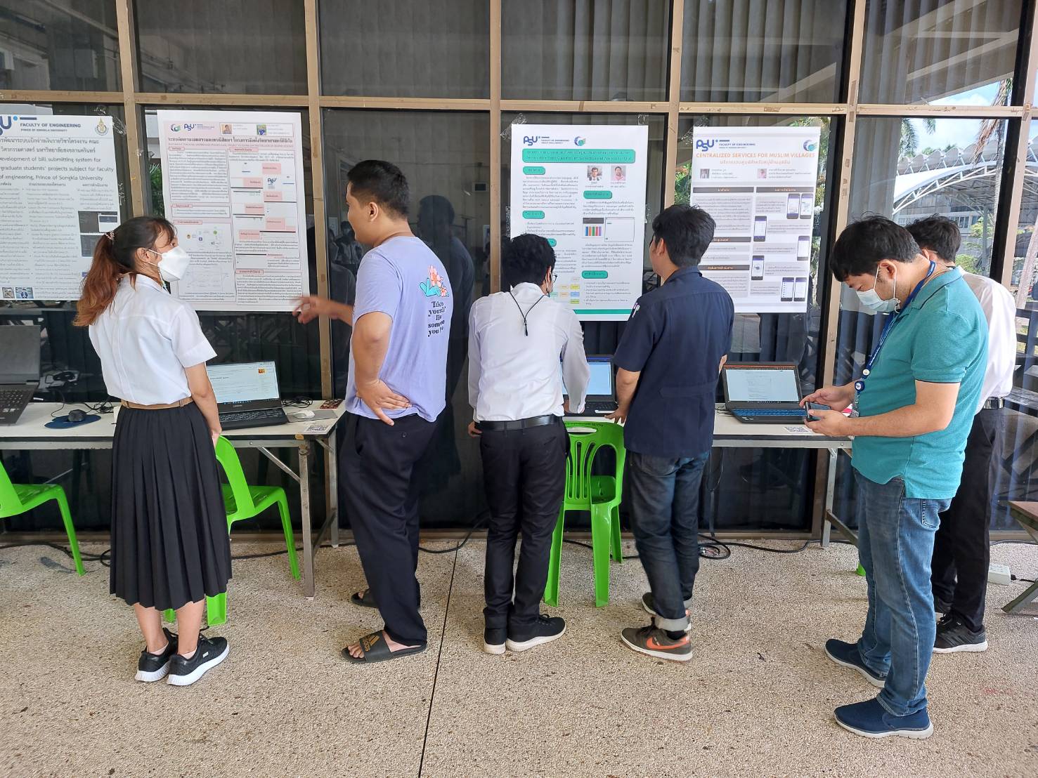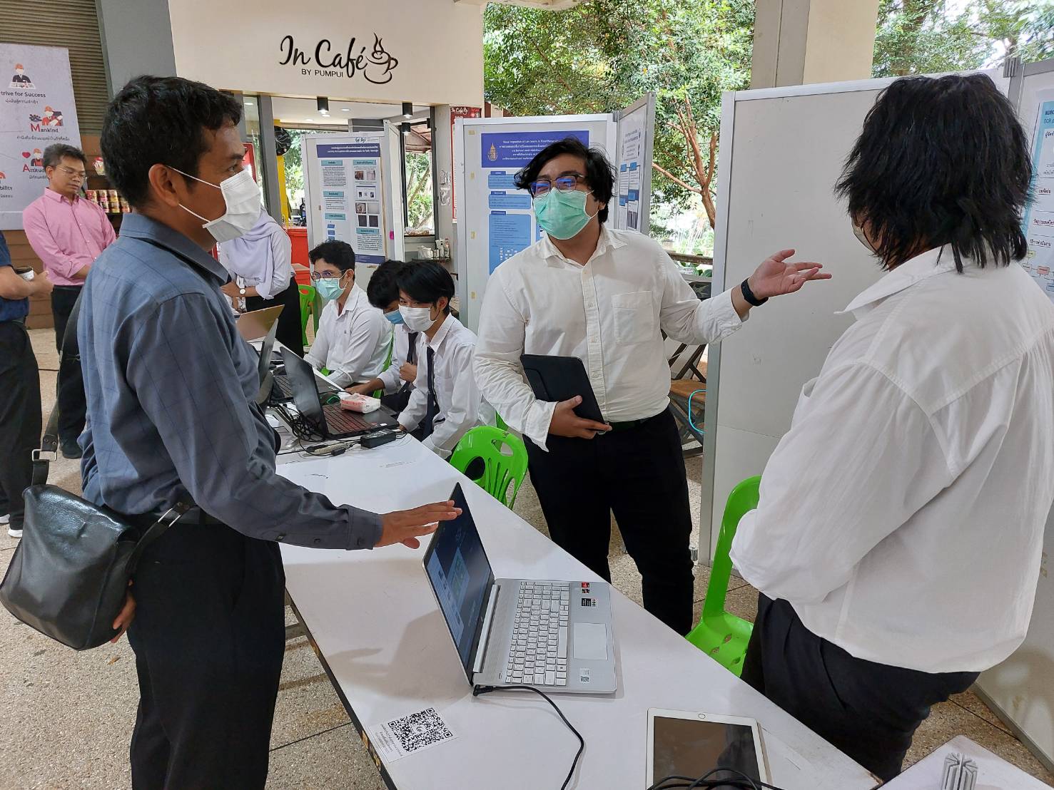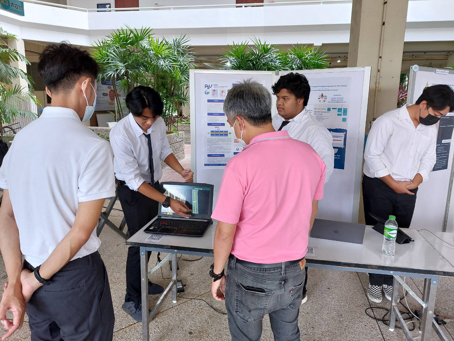 การสอบนำเสนอโครงงานทางวิศวกรรมคอมพิวเตอร์ ปีการศึกษา 2565 ในรูปแบบนิทรรศการ ผ่านการนำเสนอชิ้นงาน และ/หรือ โปสเตอร์วิชาการ ของนักศึกษาผู้ลงทะเบียนเรียนรายวิชา 240-402 Computer Engineering Project II ภาคการศึกษาที่ 2/2565 โดยมีอาจารย์ที่ปรึกษาและกรรมการสอบรับฟังการนำเสนอเพื่อวัดผลในรายวิชา