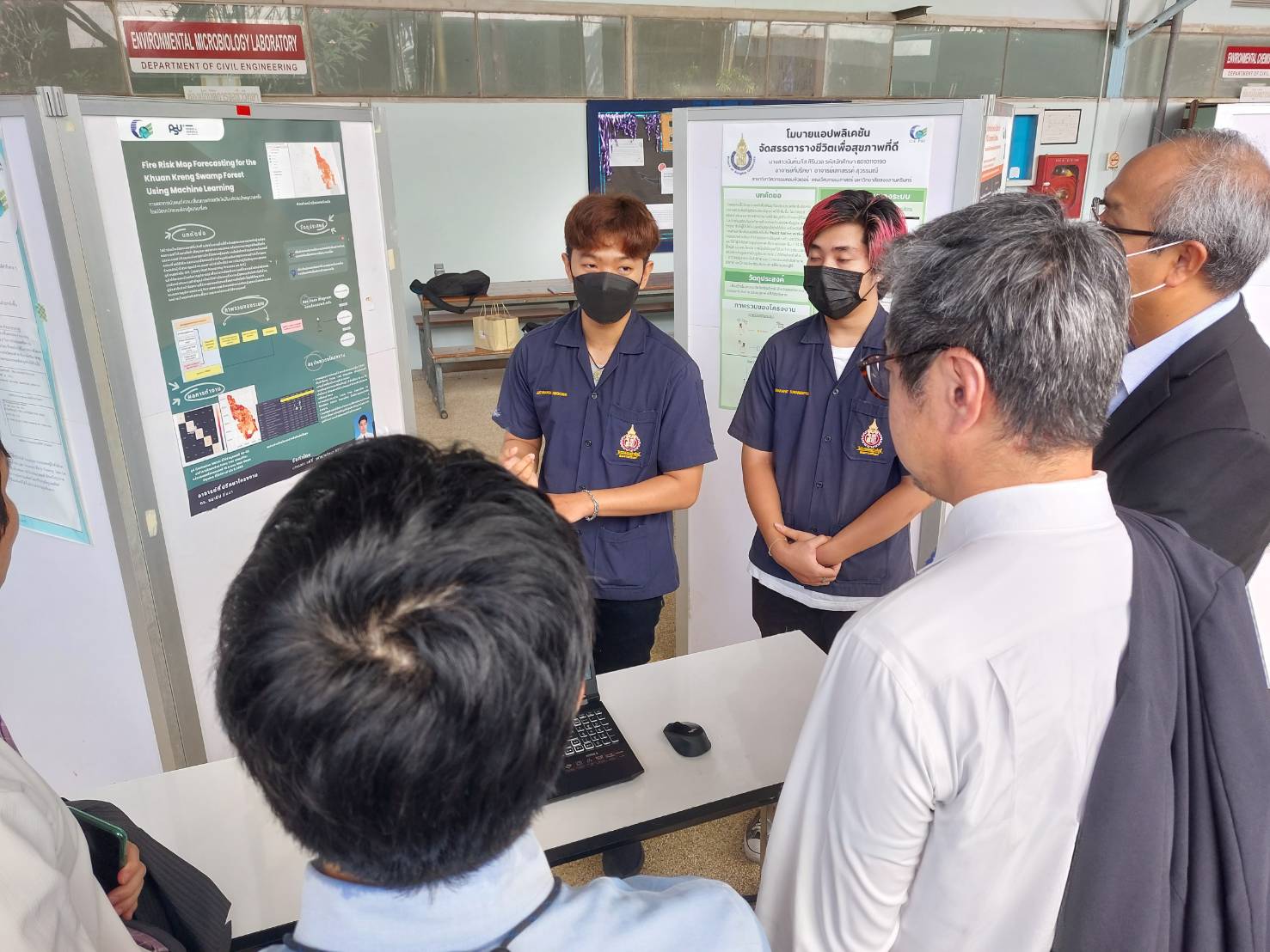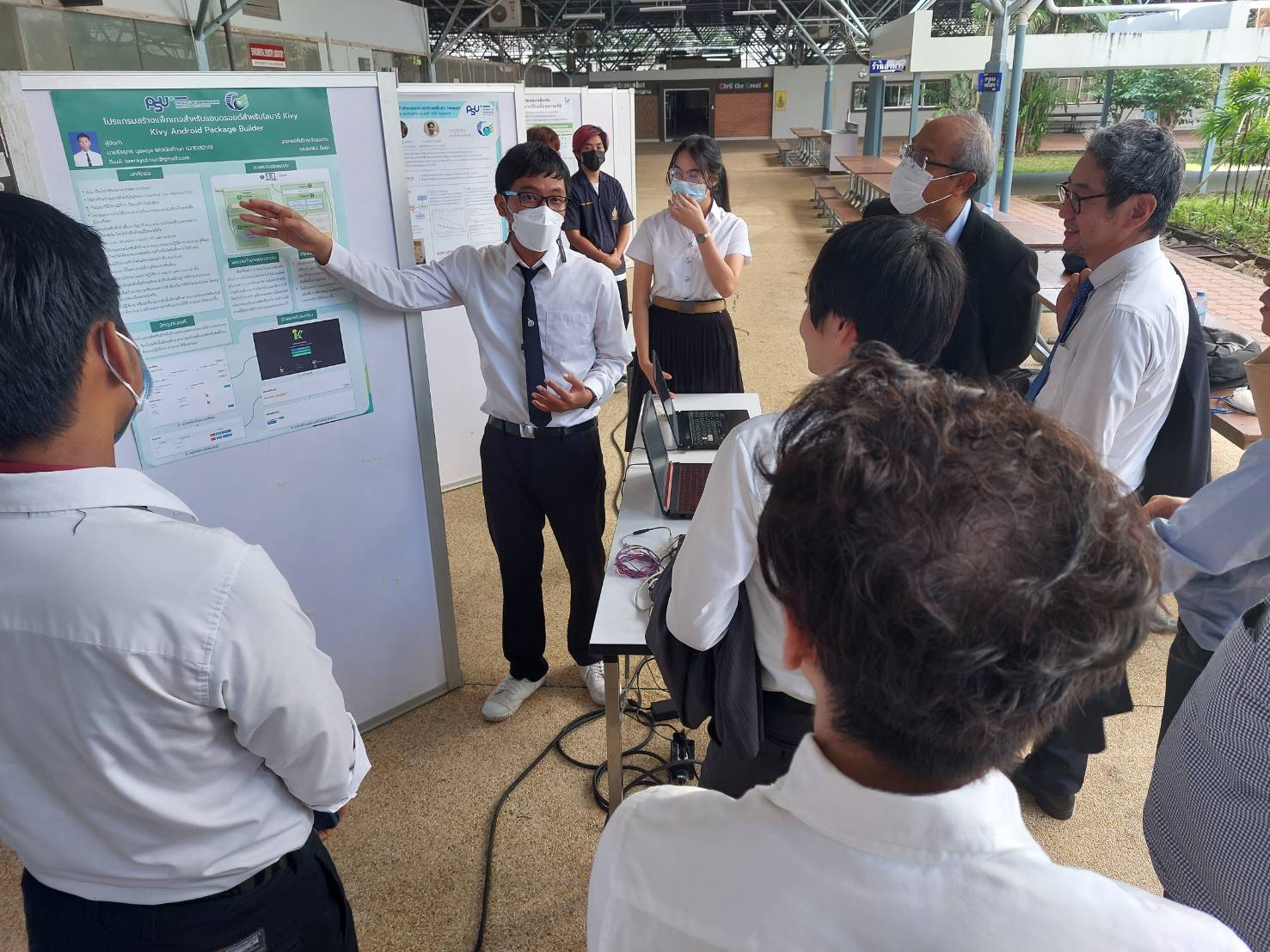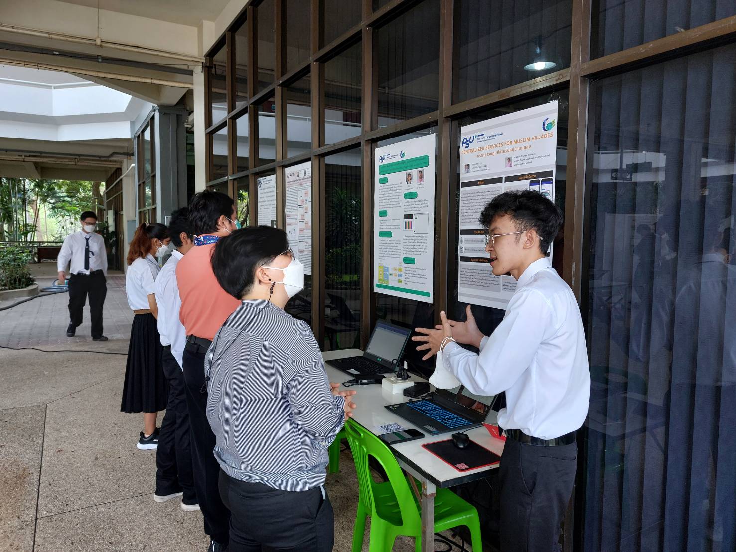 การสอบนำเสนอโครงงานทางวิศวกรรมคอมพิวเตอร์ ปีการศึกษา 2565 ในรูปแบบนิทรรศการ ผ่านการนำเสนอชิ้นงาน และ/หรือ โปสเตอร์วิชาการ ของนักศึกษาผู้ลงทะเบียนเรียนรายวิชา 240-402 Computer Engineering Project II ภาคการศึกษาที่ 2/2565 โดยมีอาจารย์ที่ปรึกษาและกรรมการสอบรับฟังการนำเสนอเพื่อวัดผลในรายวิชา