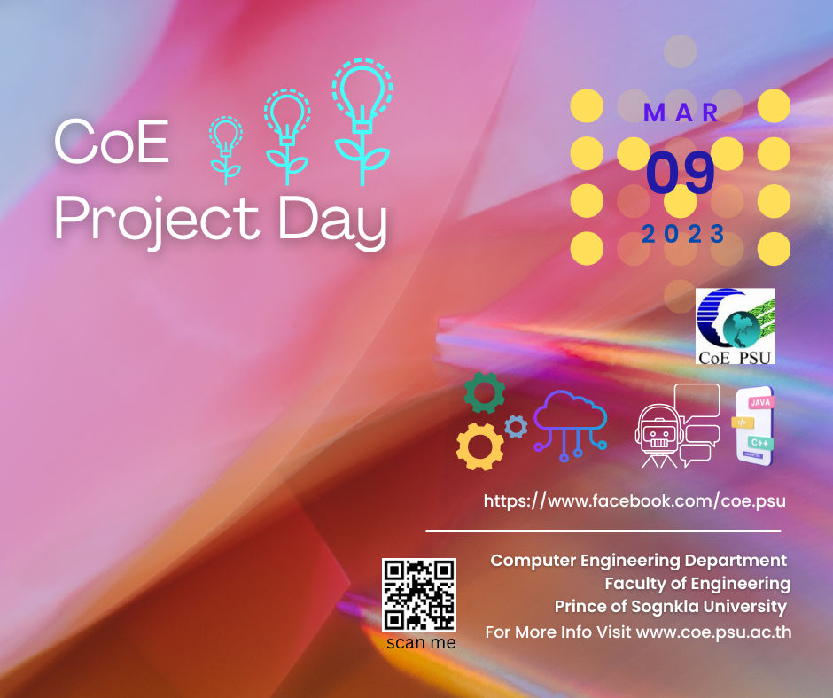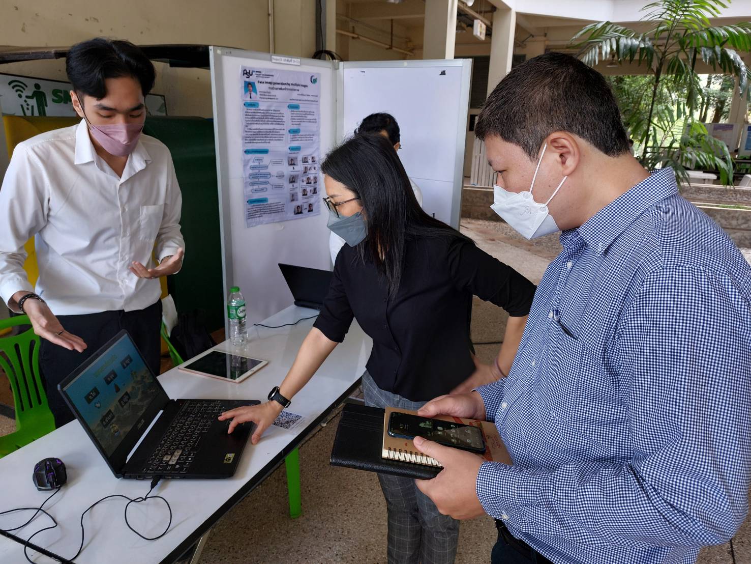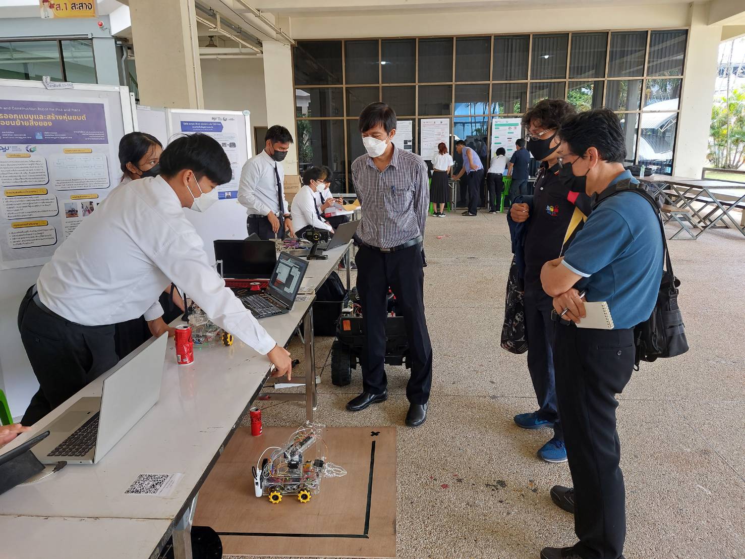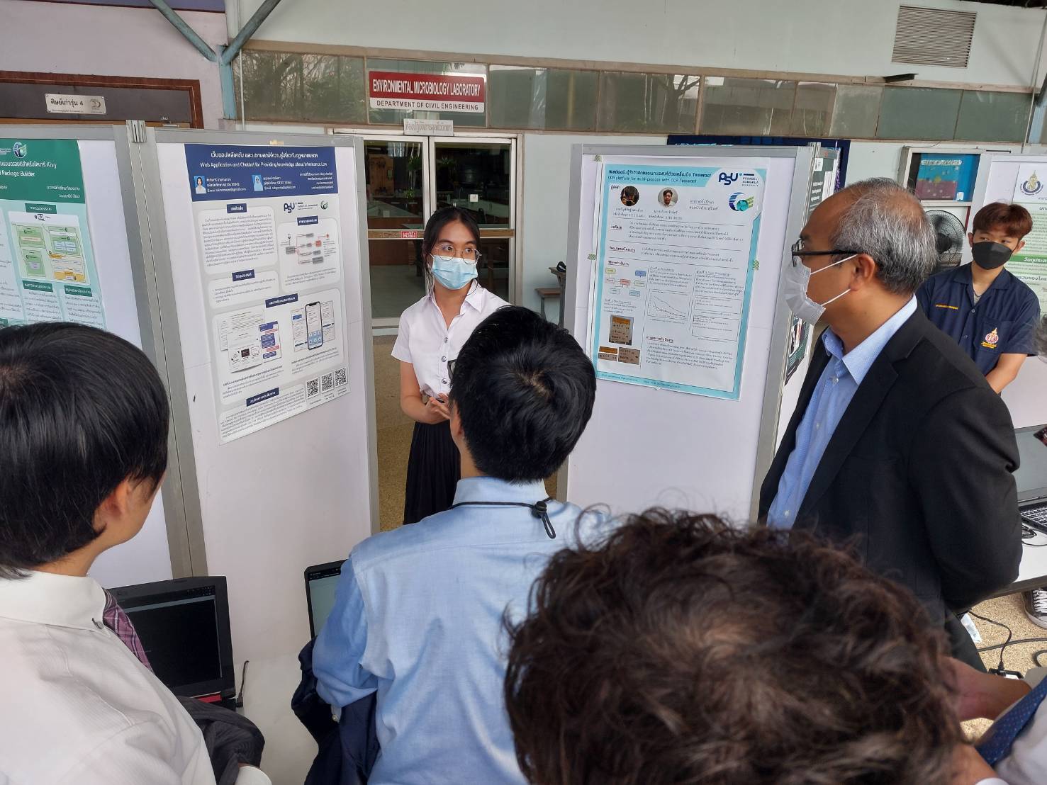 การสอบนำเสนอโครงงานทางวิศวกรรมคอมพิวเตอร์ ปีการศึกษา 2565 ในรูปแบบนิทรรศการ ผ่านการนำเสนอชิ้นงาน และ/หรือ โปสเตอร์วิชาการ ของนักศึกษาผู้ลงทะเบียนเรียนรายวิชา 240-402 Computer Engineering Project II ภาคการศึกษาที่ 2/2565 โดยมีอาจารย์ที่ปรึกษาและกรรมการสอบรับฟังการนำเสนอเพื่อวัดผลในรายวิชา