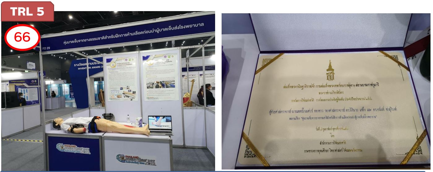 ผลงานเรื่อง "หุ่นบาดเจ็บจากยางธรรมชาติสำหรับฝึกการห้ามเลือดก่อนนำผู้บาดเจ็บส่งโรงพยาบาล" (Natural Rubber Trauma Manikin for Practicing Prehospital Hemorrhage Control)