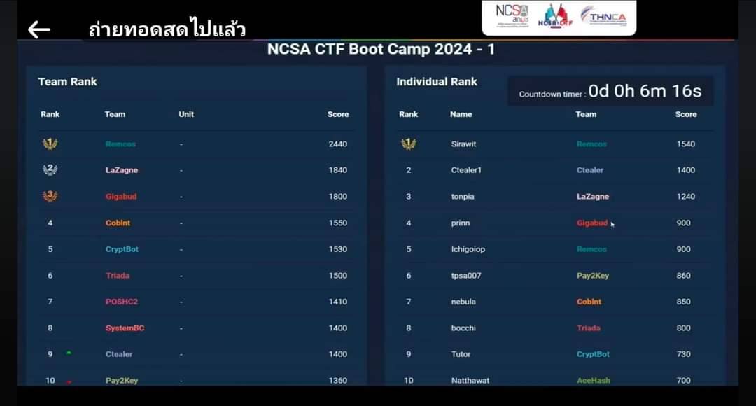 Websites : https://ctf.in.th/ncsactfbootcamp2024/ , https://www.facebook.com/THNCAbyNCSA